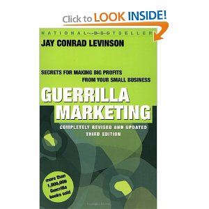 Ik kwam voor de eerste keer met de term Guerrillamarketing in aanraking toen ik van mijn moeder een pocket boekje kreeg met de gelijknamige titel, geschreven door ene Jay Levinson. Nee, nee, voor zover ik weet géén familie van. Het begon al goed, want het boekje was gratis en door mijn moeder gevonden tijdens haar werk voor een boekenverkoopweekend van St. Vincentius of een dergelijke soort vereniging. Dat boekje is volgens mij nog steeds te koop, de man leeft nog steeds en geeft nog marketing sessies aan huis (maar je moet er wel voor naar Florida meen ik). Het boekje leest snel en gemakkelijk en als je er open voor staat, denk je al gauw “dat kunnen we doen of dat en dat”.