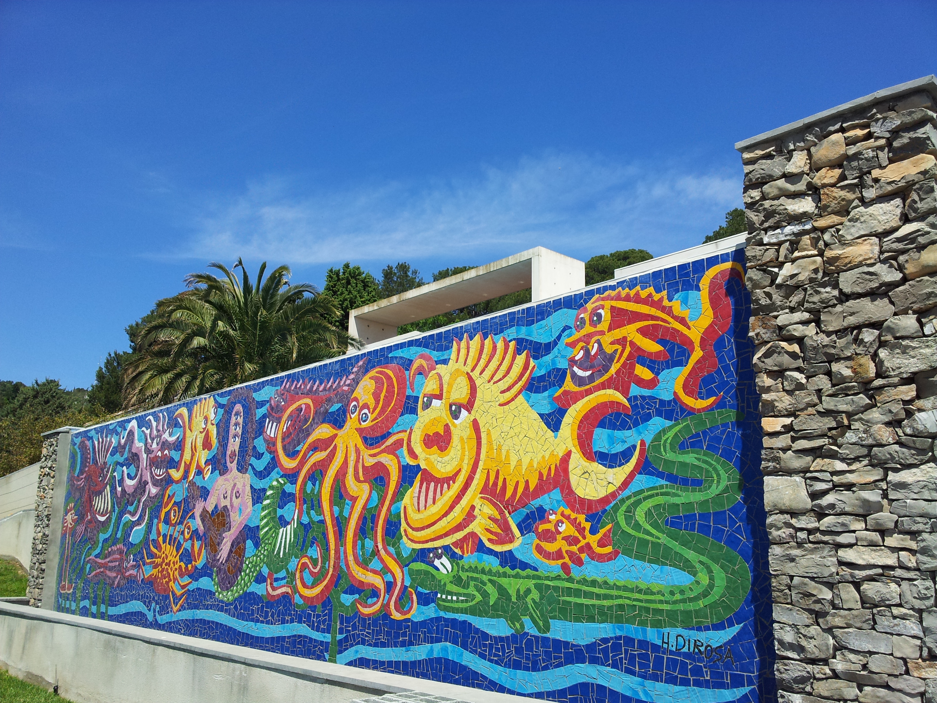 One of them, Hervé di Rosa -still alive!! I want to give extra attention as our house in Sète has a very special and very large piece of art made by him and one of the most famous French mosaicist, David Dalichoux. The mosaic is totally made out of broken pieces of Murano glass, is about 10 meter wide and 2.5 meter high. During summer, the water of the pool runs over the full mosaic like a waterfall, giving it some extra brightness which is difficult to describe. Also in the city of Sète you can find several pieces from the hand of Hervé di Rosa. All in colors that make you feel good and Mediterranean”.