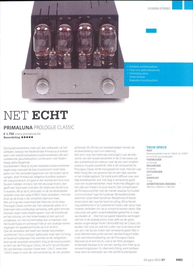 “Wie toch niet helemaal overtuigd is van de relevantie van een buizenversterker in de 21ste eeuw, zal dat voorbehoud als sneeuw voor de zon zien smelten zodra er muziek weerklinkt.”