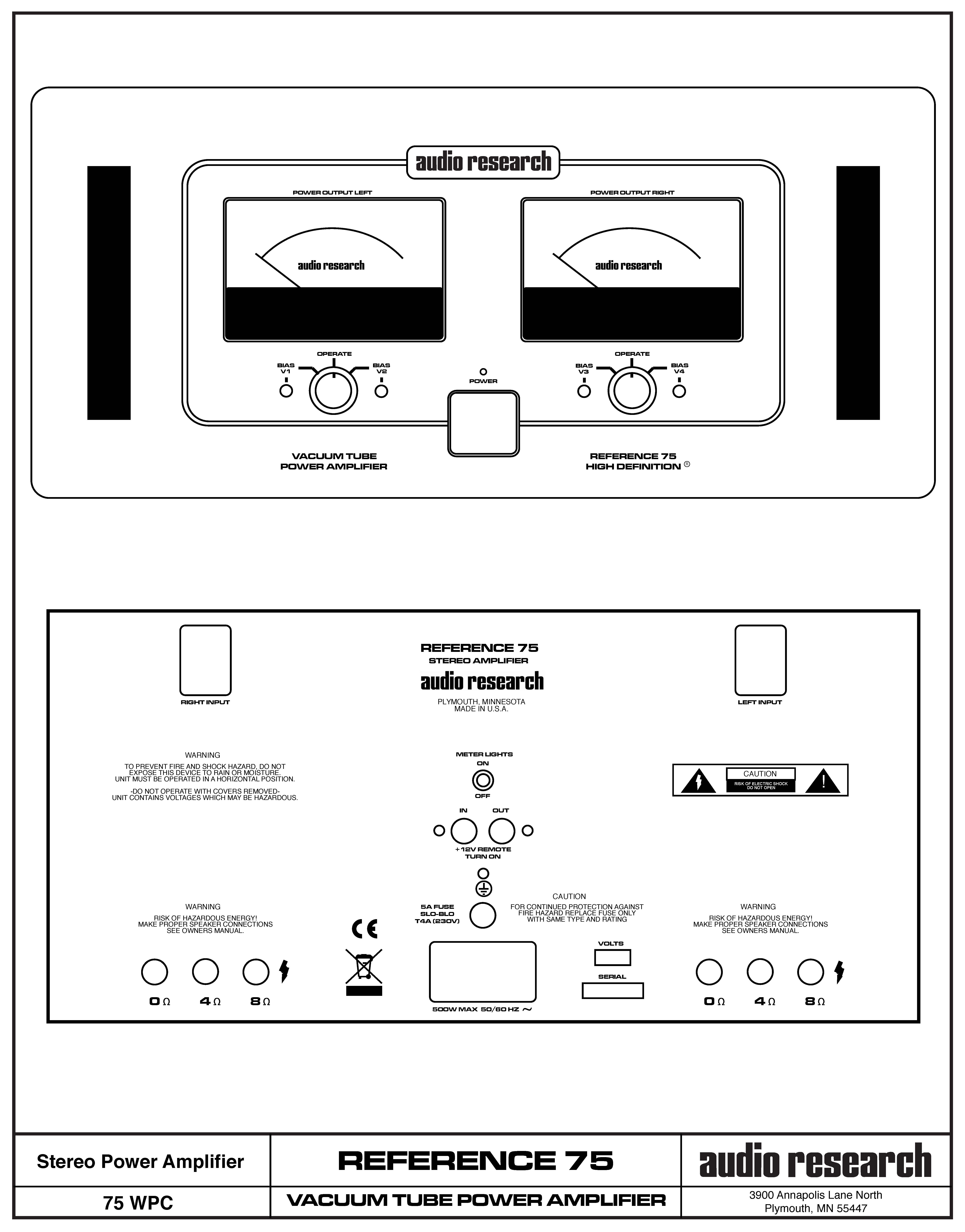 The REF75 is a great looking amplifier, slightly reminiscent of our older classic designs. The front panel has two illuminated analog power/bias meters, one for each channel. Under each meter is a knob to switch from power output to bias monitoring for each output tube. Bias adjustment points are accessed from the front panel, too, offering real convenience. The outer dimensions of the REF75 are identical to the REF150. The front panel, handles, and top cover are available in Natural or Black.