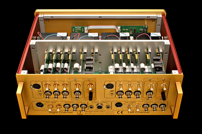 The big challenge was to design a preamplifier with the very same design philosophy. My big problem was how could I select a source without physically switching it, and even more important, how could I vary the loudness level without involving a potentiometer wipe or relay, or even analog switched arrays (which involves MosFets).