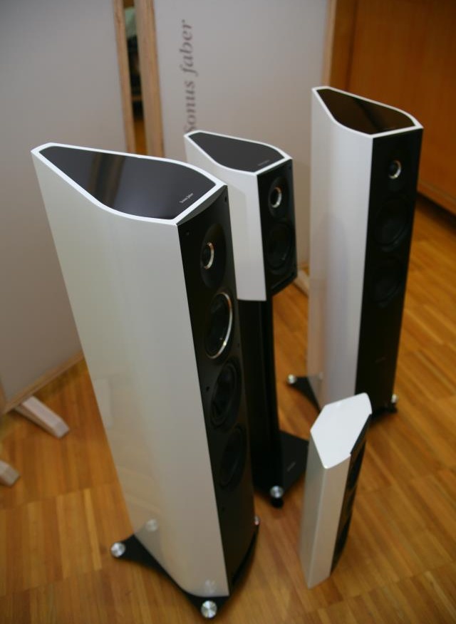 Beautifully finished in black or white lacquer, the Venere 2.5 is a compact (43.2″ H by 13.3″ W by 17″ D), 2.5-way, reflex-loaded design with a 1.1″ fabric-dome tweeter, a 7″ Curv-cone mid/woofer, and a 7″ Curv-cone woofer. The cabinet’s sidewalls curve around to meet a very narrow rear panel just wide enough to accommodate a staggered array of four multiway terminals; the cabinet sits on a thick glass base plate that accepts four substantial spikes, the front pair nearly an inch longer than the rear, so that the entire cabinet tilts back to align the tweeter with the deeper woofer diaphragms. The sound was spacious, relaxed, and well balanced overall, with detailed mids and highs and a rich lower midrange, said KR. “The Venere 2.5 is not only provocatively sexy in appearance; it delivers,” he concluded. The Venere 2.5 exhibited an exaggerated midbass on the test bench, but offered “respectable measured performance” overall, said JA.