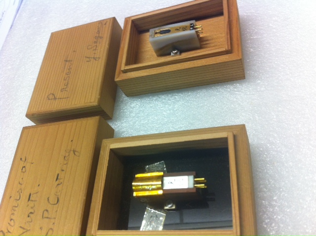 After about 40 years in the audio business I have collected -without really collecting- a lot of audio and audio related material. In fact after all these years a part of our warehouse is like a small audiomuseum. Lot of things, each with their own story. Today some of these hidden treasures we want to share with you here on the blog. 30 years ago we introduced Koetsu cartridges to the European market. I went to visit Yoshiaki Sugano, the man who built the cartridges, several times. The past few weeks I shared my experiences with you through this blog. During one of these visits I received two cartridges as a gift from Mr. Sugano. One for mono and one for 78 rpm discs I think these are UNIQUE Koetsu cartridges. Signed by him and with some personal notes. Now I want to give someone the opportunity to obtain these cartridges. These have never been used and are in excellent condition. I also have 2 other Koetsu Onyx cartridges. Don’t know the condition of these, don’t know the story (if any) behind these. If someone is interested, please make me an offer before we offer them through general public websites like Ebay.