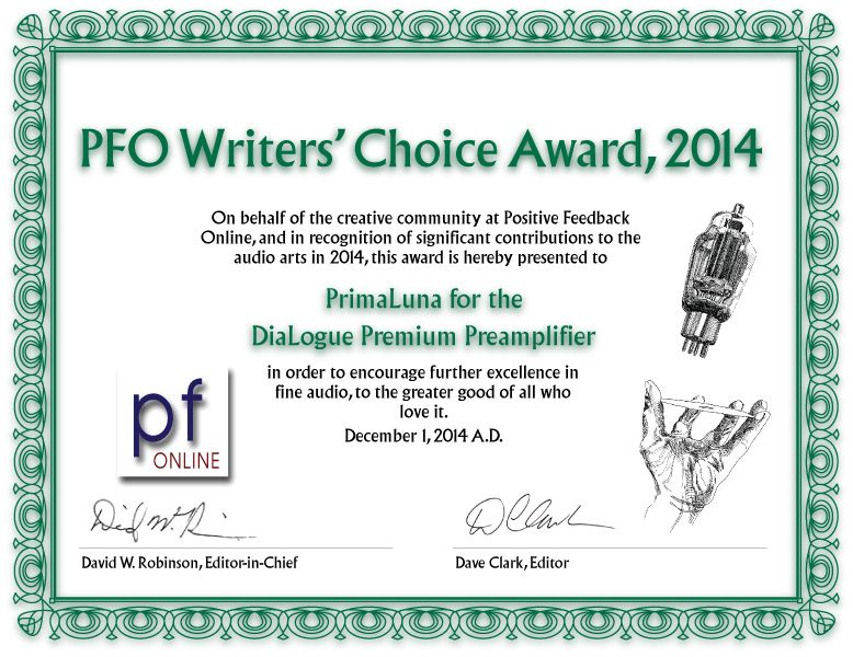 ← PFO Writers’ Choice Award 2014 for The PrimaLuna DiaLogue Premium Preamplifier!
